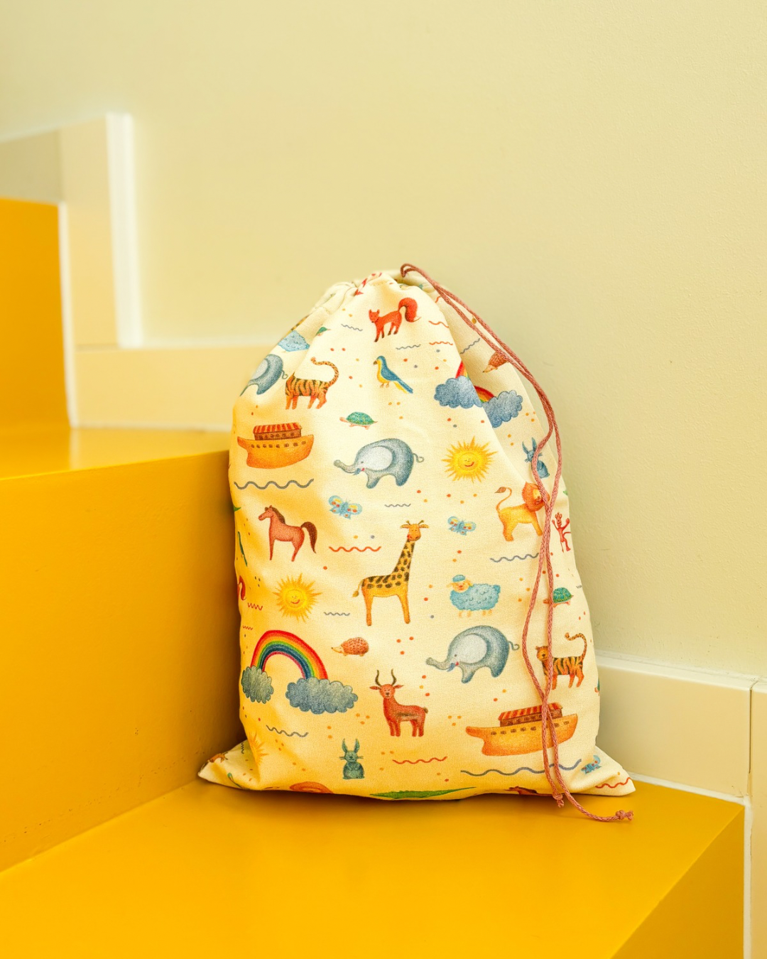 Worek bawełniany w rozmiarze S (33 × 24 cm) to idealny kompan na co dzień – zmieści się w torebce, plecaku, a nawet w dziecięcym tornistrze, pilnując najważniejszych skarbów świata (tych dużych i całkiem malutkich).