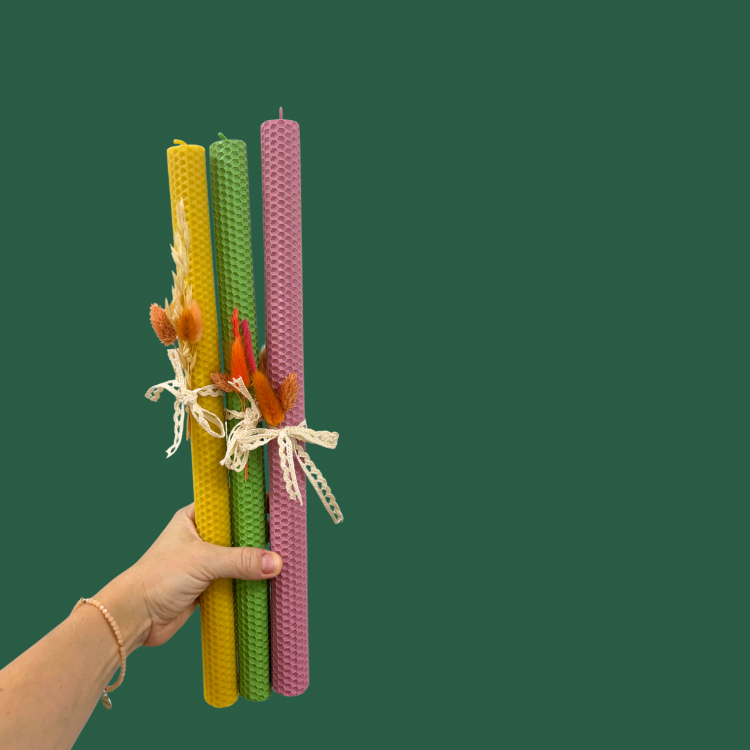 Świeca do Chrztu by Tati wykonana jest z 100% naturalnej węzy pszczelej 🐝 Pięknie pachnie, jest lekka i może się palić baaaardzo długo. Nie pozostają na niej nieestetyczne ślady palenia, można więc łatwo i bezpiecznie przechowywać ją w domu 💛