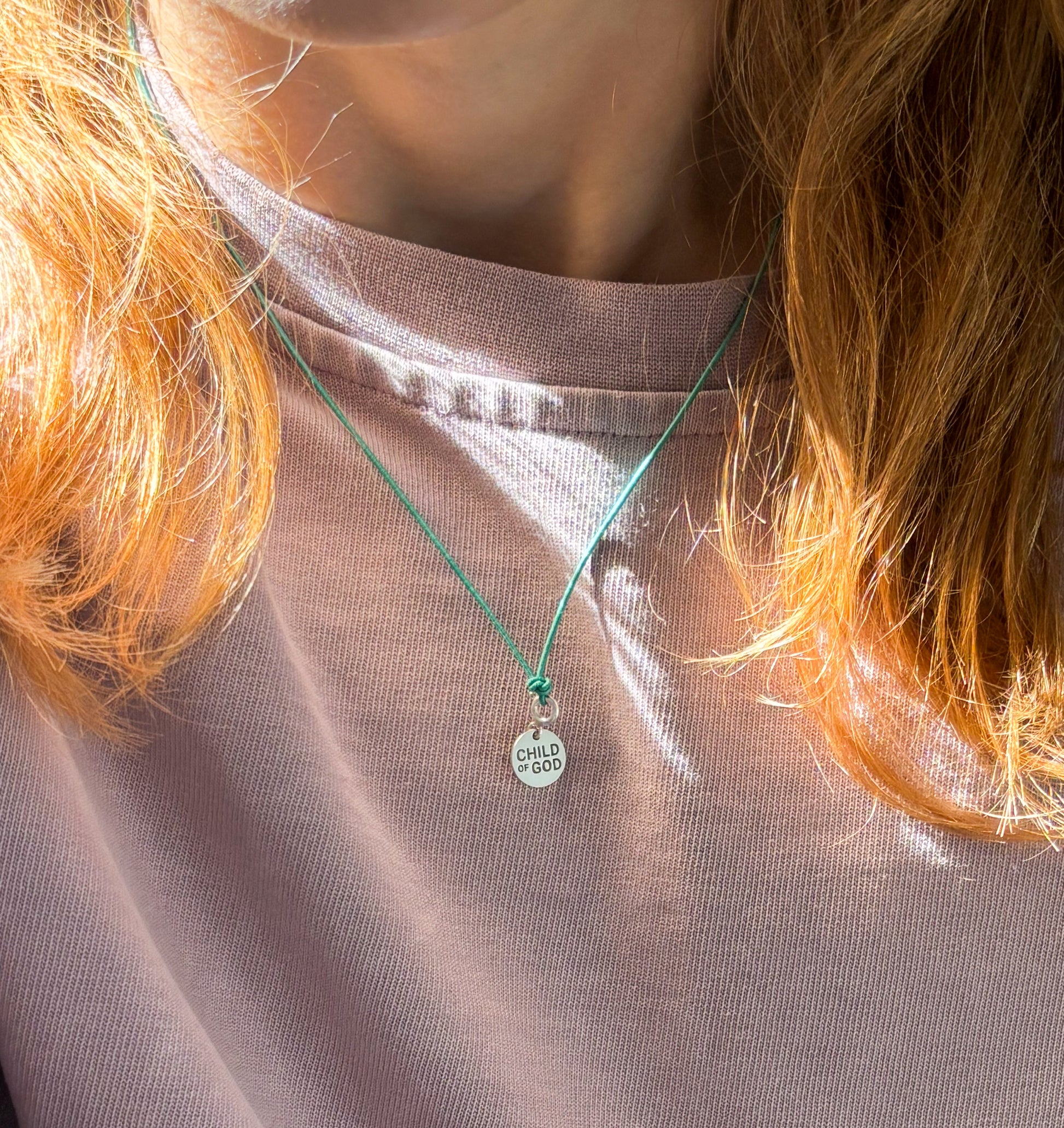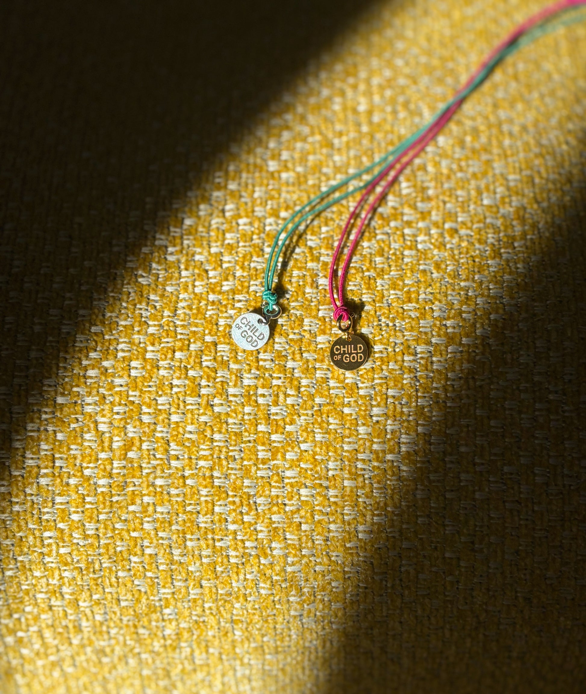 Medalik Child of God w dwóch wariantach do wyboru: srebrnym i pozłacanym, na gumce, dzięki czemu jest wygodny i bezpieczny – idealny dla małych rączek!