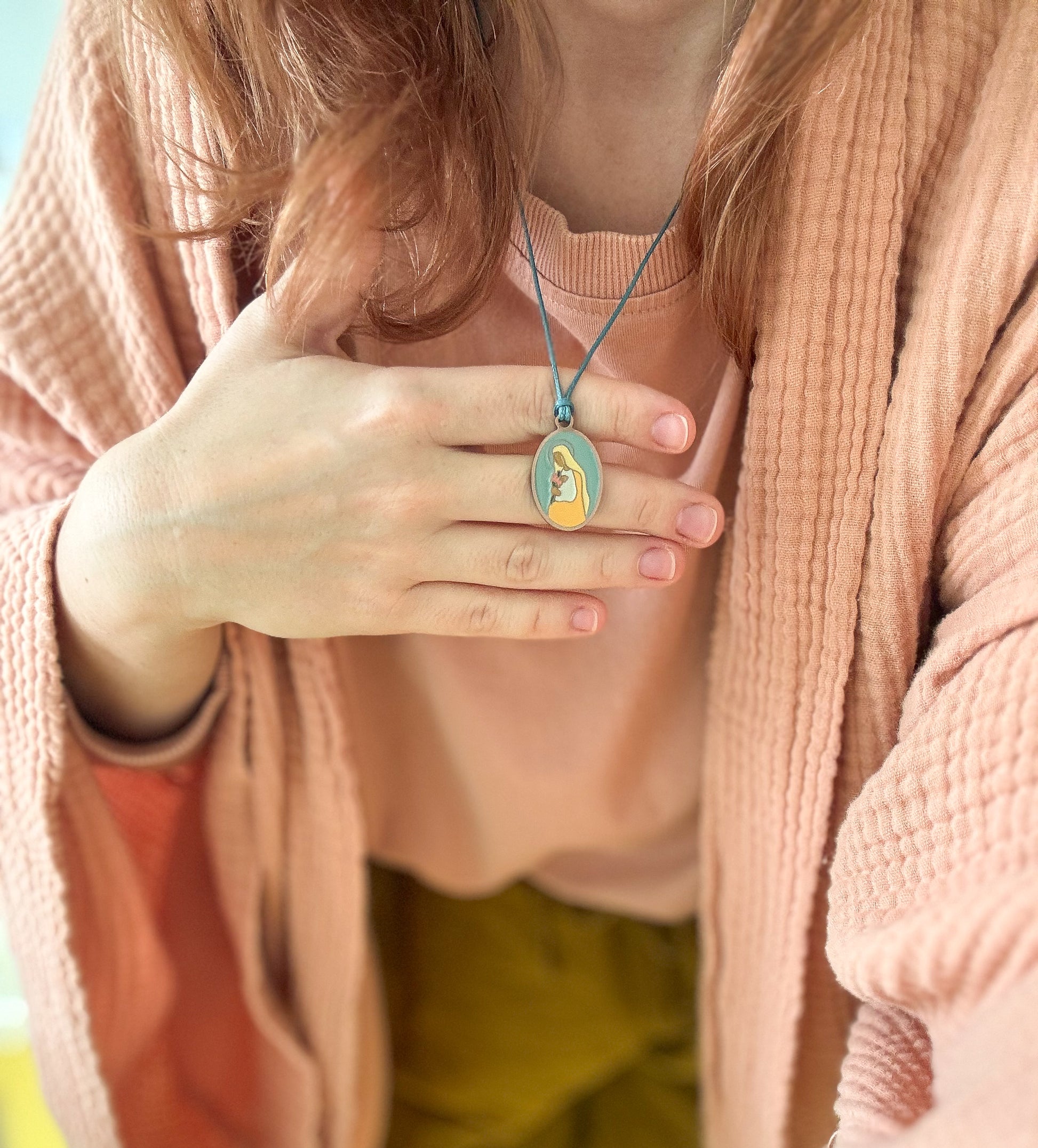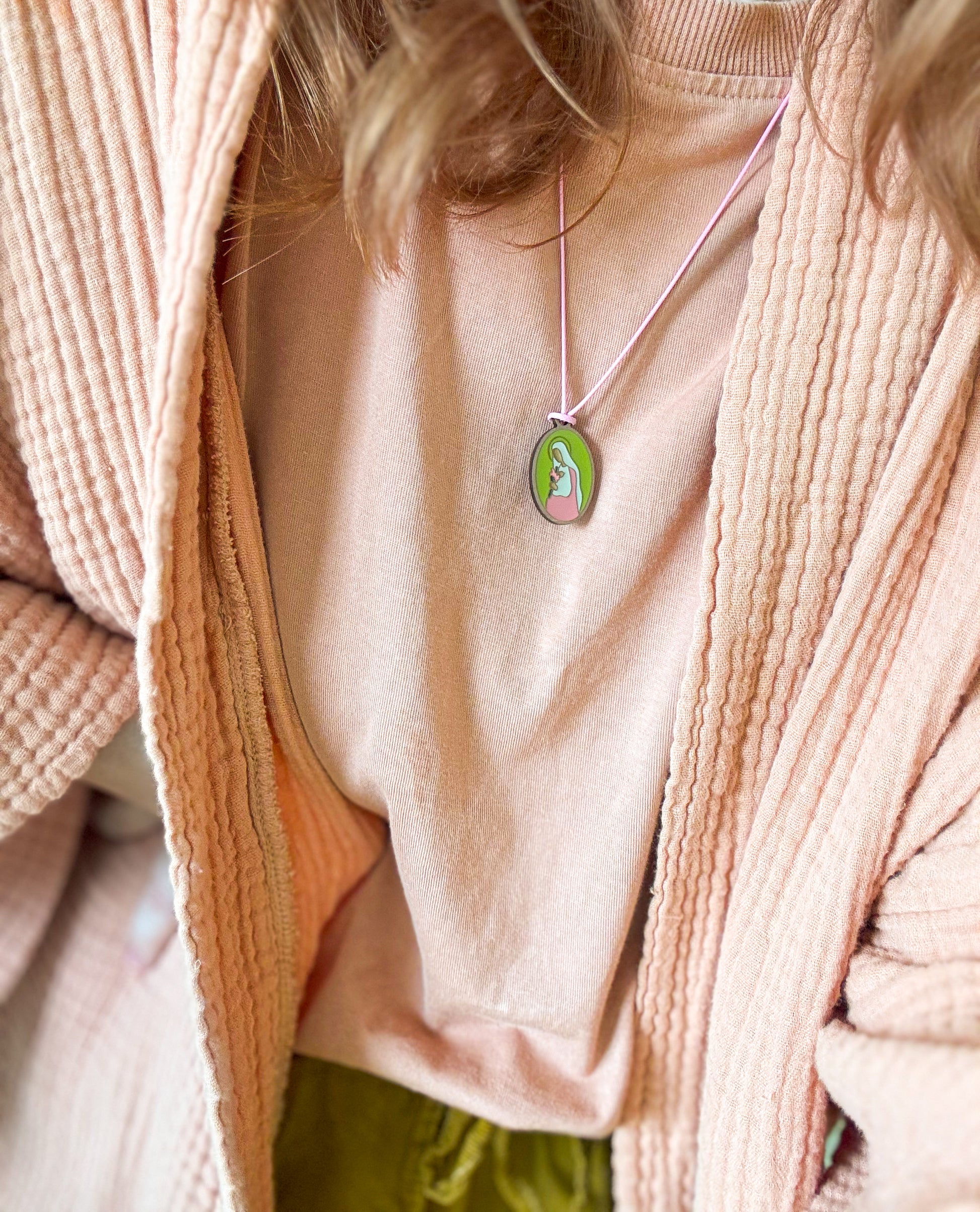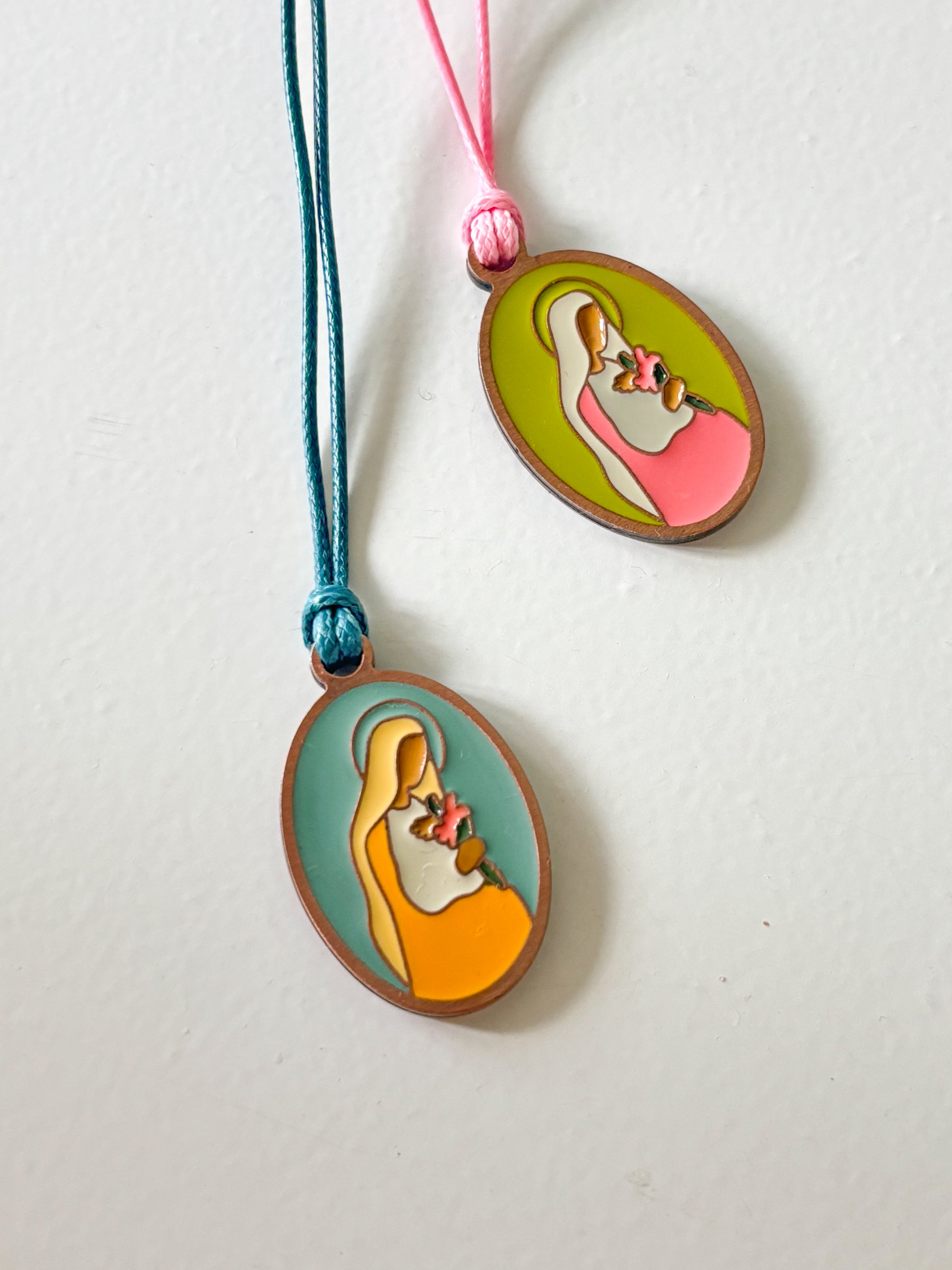 Medalik z Matką Bożą Oczekującą na woskowanym sznurku