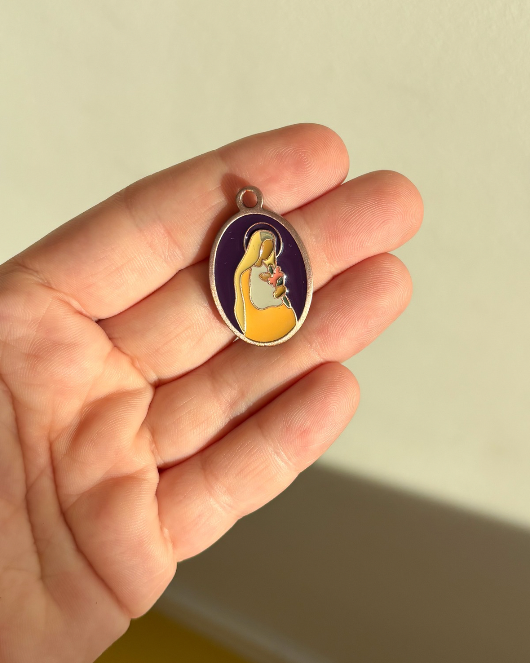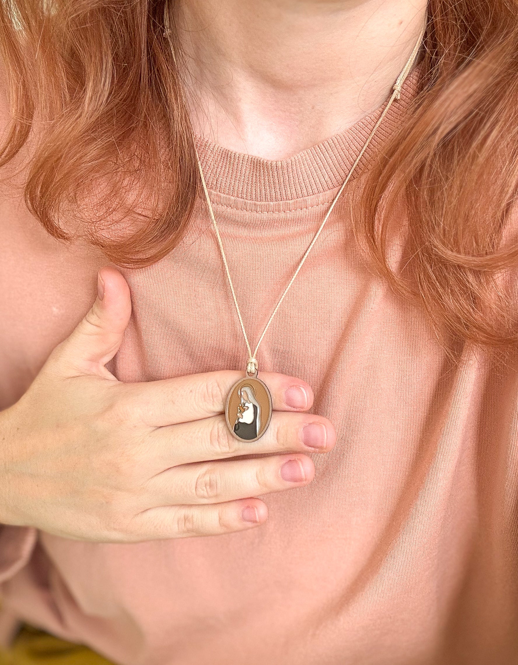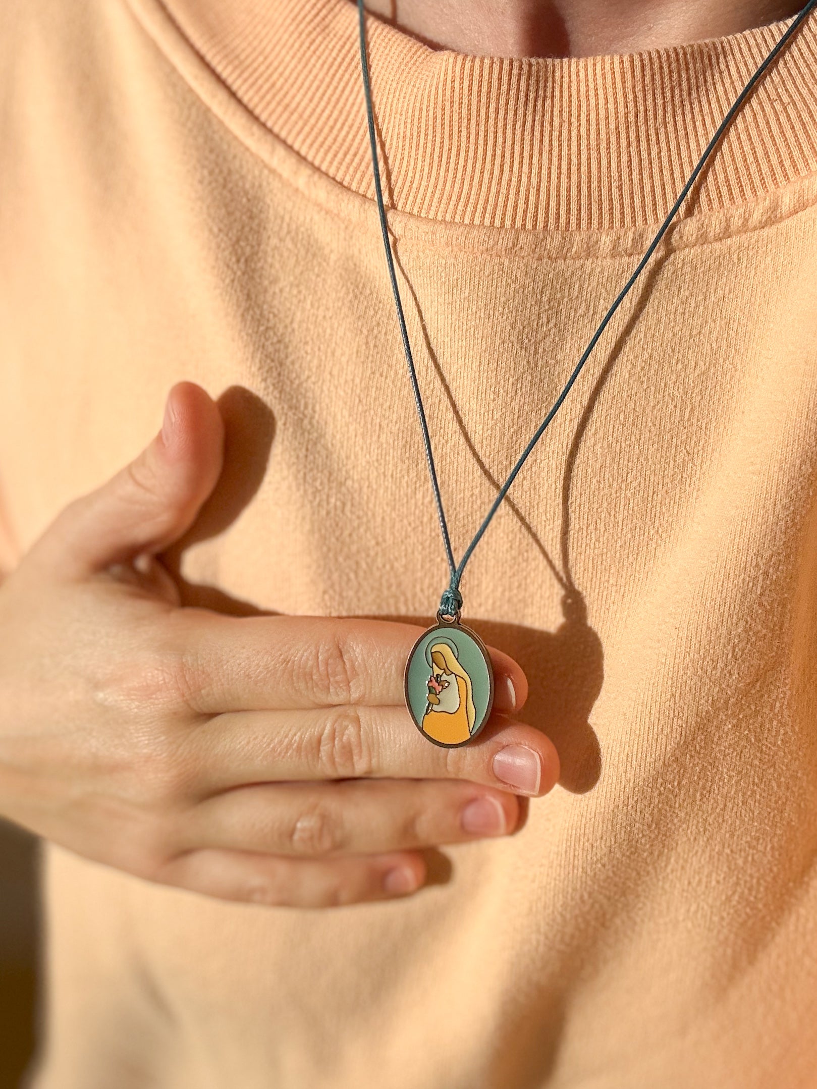 Medalik z Matką Bożą Oczekującą na woskowanym sznurku
